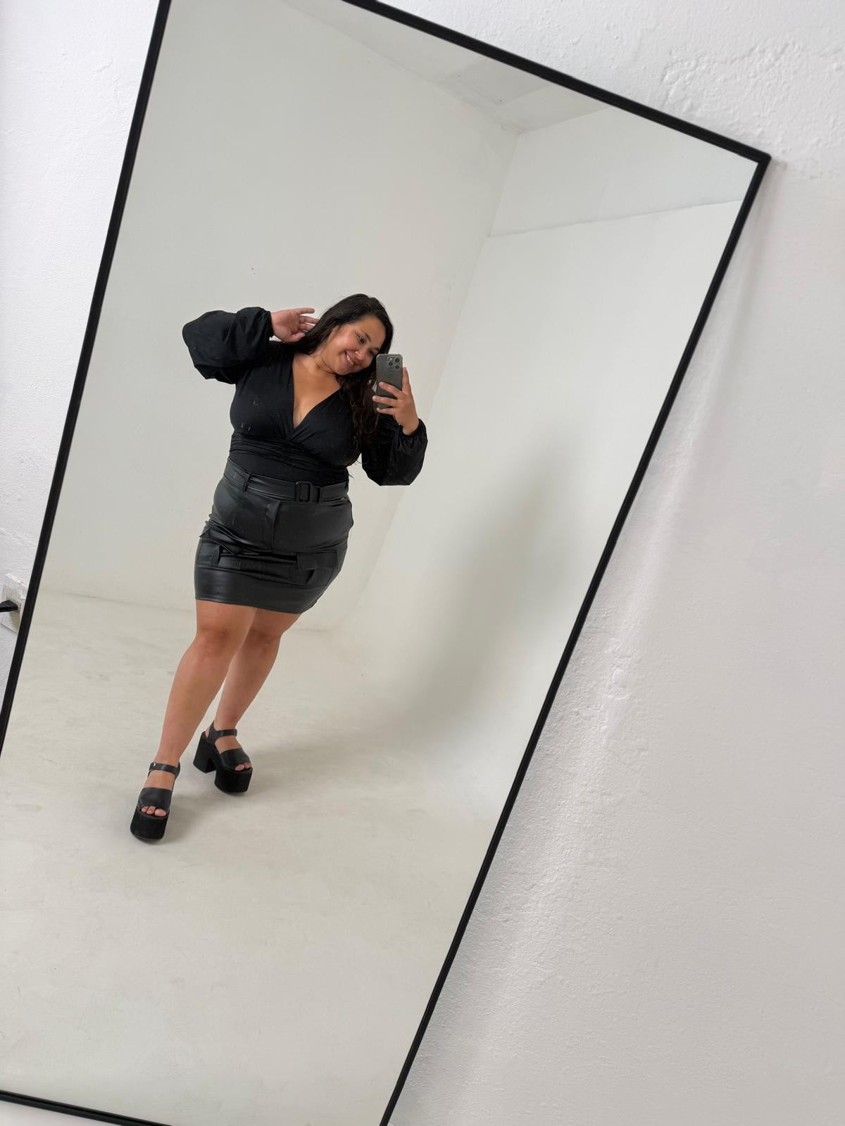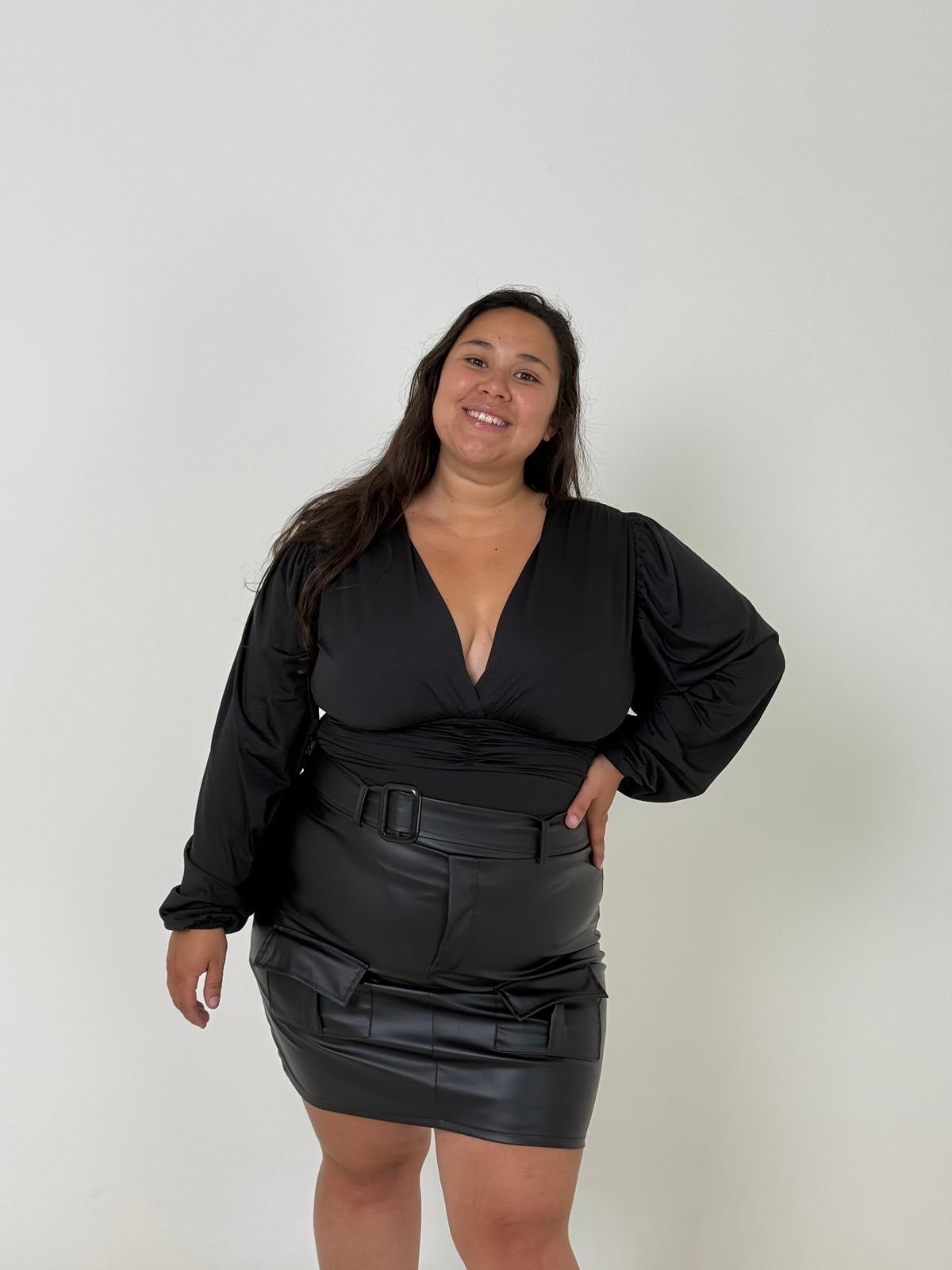 El Body de Fiesta Carls es esa prenda que te hace sentir diosa apenas te la ponés. Su diseño estilo remera le da un toque moderno y elegante, mientras que la tela suave, firme y con brillo sutil abraza tus curvas sin marcar.